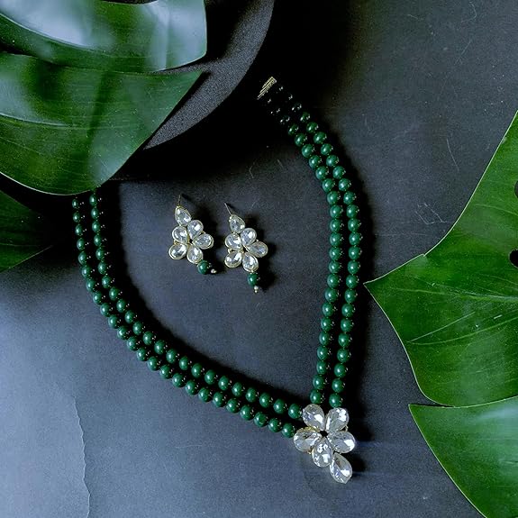 - QUALITY: This jewellery set is crafted in 18K gold plating light weight pearl necklace set glided with Kundan work.
