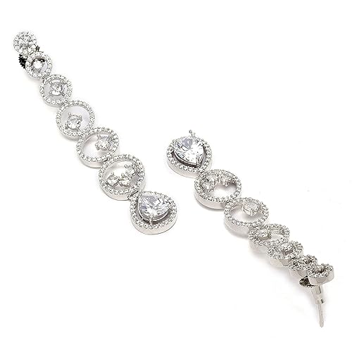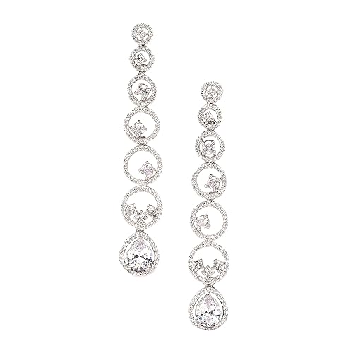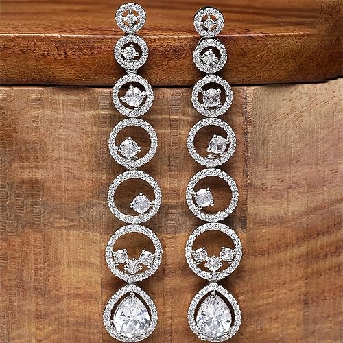 LukGud Oxidised Silver-Plated American Diamond studded Circular Shaped Drop Earrings for Girls and Women