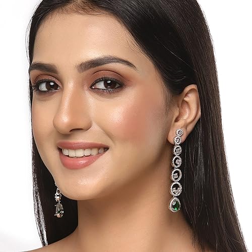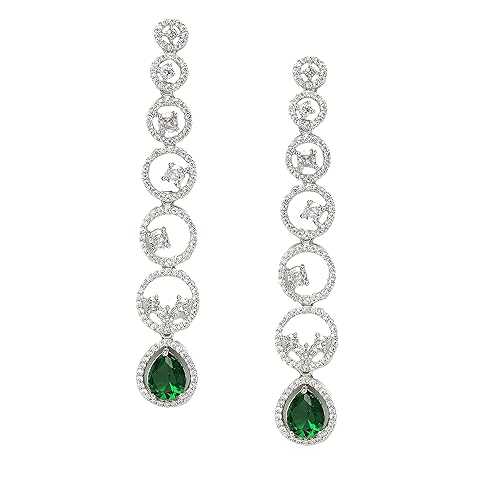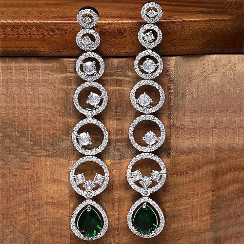 LukGud Silver-Plated American Diamond studded Circular Shaped Drop Earrings for Girls and Women